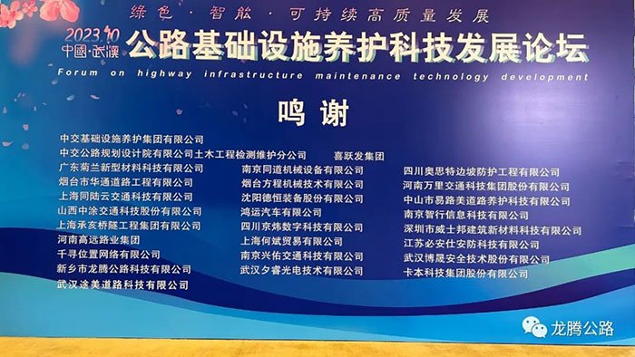 10月31日,“公路基礎(chǔ)設(shè)施養(yǎng)護(hù)科技發(fā)展論壇”在江城武漢順利舉辦。 新鄉(xiāng)龍騰公路科技有限責(zé)任公司攜道路養(yǎng)護(hù)領(lǐng)域先進(jìn)產(chǎn)品技術(shù)于C2展位參展,總經(jīng)理郭之寧同行業(yè)知名專(zhuān)家、相關(guān)主管部門(mén)領(lǐng)導(dǎo)、行業(yè)企業(yè),深入探討交流新技術(shù)、新方法!