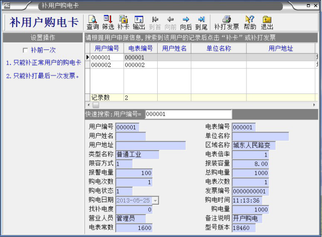 本章節通過圖片和文字,詳細的介紹預付費電表在售電系統補卡的步驟: