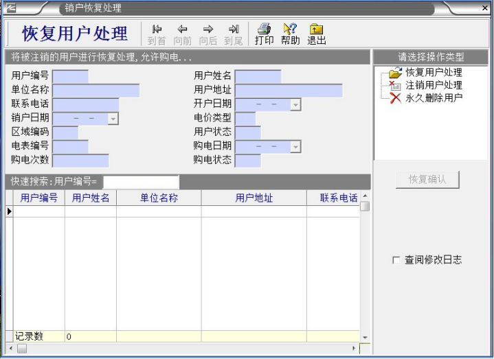 ,鼠標左鍵“銷戶恢復處理”,出現以下對話框:
