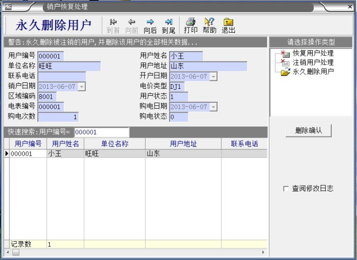 預付費電表系統管理者,在平時的操作中經常會遇到需要刪除用戶,小編在接下來通過圖片和文字詳細介紹這方面的操作。