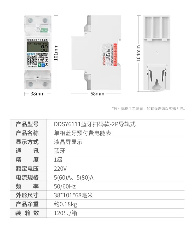 單相導軌藍牙掃碼充值電表