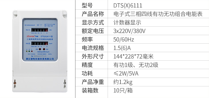 DTS(X)6111、DSS(X)6111型三相電子式有功無功組合電能表(以下簡稱電能表),是為了適應(yīng)電網(wǎng)改造設(shè)計(jì)開發(fā)的有功、無功組合式電能表。它具有較高的準(zhǔn)確度和可行性。本產(chǎn)品制造標(biāo)準(zhǔn)符合GB/T17215.321-2008《1級和2級靜止式交流有功電能表》、GB/T17215.323-2008、DL/T614-1997《多功能電能表》、DL/T645-1997《多功能電能表通信規(guī)約》等電力行業(yè)標(biāo)準(zhǔn)對三相靜止式電能表全部技術(shù)要求,是對需要進(jìn)行無功電量考核的企業(yè)、變電站或電廠理想的選擇,亦適合輸配電或配網(wǎng)自動化用表。本產(chǎn)品可供計(jì)量參比頻率為50Hz電網(wǎng)中的三相交流有功和無功電能,并能進(jìn)行正、反向電能計(jì)量和紅外及RS485通訊功能。其特點(diǎn)是精度高、可靠性好、寬負(fù)荷、低功耗、誤差曲線平直、抗干擾能力強(qiáng)。