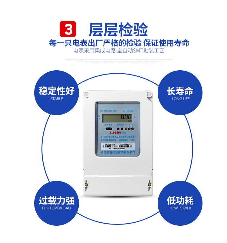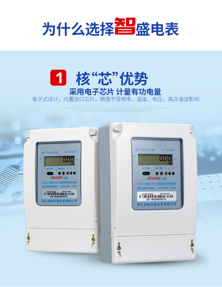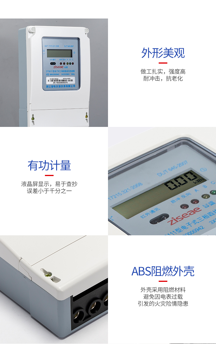 DTS6111型三相四線和DSS6111型三相三線兩種型號三相電子式有功電能表,內部運用了集成電路在經過SMT工藝生產制作而成。結構設計合理,制作工藝先進,跟傳統的電能計量表對比,三相電子式有功電能表的測量準確度高、性能可靠、節能。