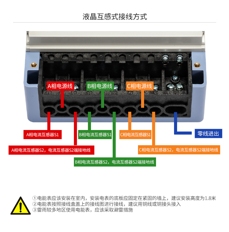 電能表安裝在室內或室外電表箱內,安裝底座應固定在堅固耐火的墻上,空氣中無腐蝕性氣體,具體安裝尺寸圖見附錄圖一(建議安裝高度為1.8m);安裝過程中如果本機受到劇烈撞擊或高空跌落外殼有明顯損毀時,請不要安裝、加電,并盡快與供應商聯系。