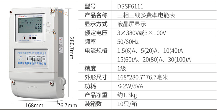 DTSF6111三相四線 DSSF6111三相三線電子式多費率電能表(尖峰平谷電表)是我公司開發的,具有分時計量用戶所用電能功能,并可實現多種用電費率計費和集中抄表功能的電能計量電能表,該表技術性能符合GB/T17215.321-2008《1級和2級電子式交流有功電度表》和GB/T15284-2002《復費率(分時)電度表》國家標準的要求,適用于計量額定頻率為50Hz或60Hz三相交流有功電能。