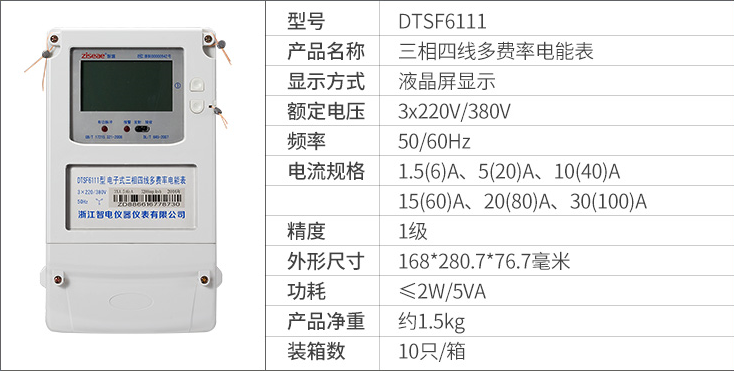 DTSF6111三相四線 DSSF6111 三相三線電子式多費率電能表(尖峰平谷電表),具有分時計量用戶所用電能功能,并可實現多種用電費率計費和集中抄表功能的電能計量電能表,該表技術性能符合GB/T17215.321-2008《1級和2級電子式交流有功電度表》和GB/T15284-2002《復費率(分時)電度表》國家標準的要求,適用于計量額定頻率為50Hz或60Hz三相交流有功電能。