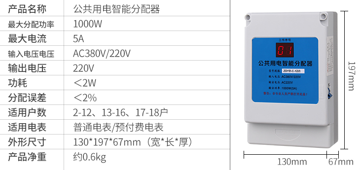 七、本機(jī)自身耗電(雖然≤0.5W)同樣參與平均分配。并自動(dòng)檢測(cè)帶電戶數(shù)。做到隨意接通幾戶就分配幾戶,確保負(fù)載不失電。