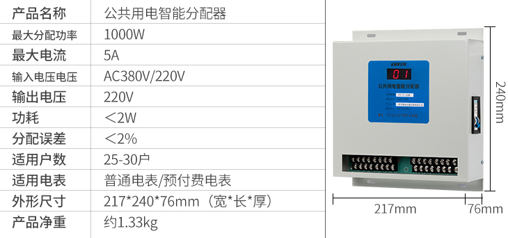 一、智盛牌公用電智能分配器”是將公共樓道用電所消耗的電能(如樓道燈,對講防盜門等),自動分配到各受益用戶的電表中。每天輪流接通一戶電表,開機通電時第一戶電表隨機產(chǎn)生,達到公平分攤電費的目的,本款公共用電智能分配器特點:內置小型空開,過載短路直接切斷,避免頻繁更換保險絲。