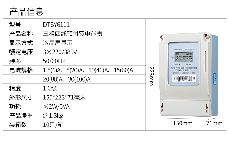 DTSY6111系列插卡式三相電子式預(yù)付費電能表系我公司采用集成電路,16位A/D轉(zhuǎn)換、數(shù)字乘法器、應(yīng)用數(shù)字采樣處理技術(shù)并由先進(jìn)的單片機(jī)處理系統(tǒng)進(jìn)行數(shù)據(jù)的采集、處理和保存及應(yīng)用SMT工藝制造的儀表。適用于計量額定頻率為50Hz或60Hz的三相三線或三相四線交流電網(wǎng)中有功電能的消耗。
