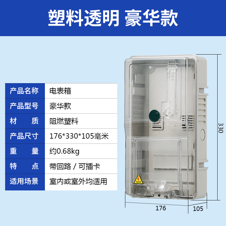 2.塑料透明電表箱采用集成化設計理念,整體造型美觀,外觀平整光亮,比例勻稱,結構合理。
