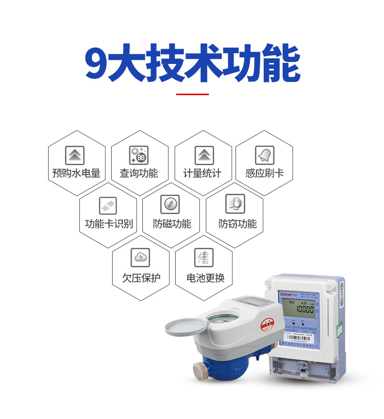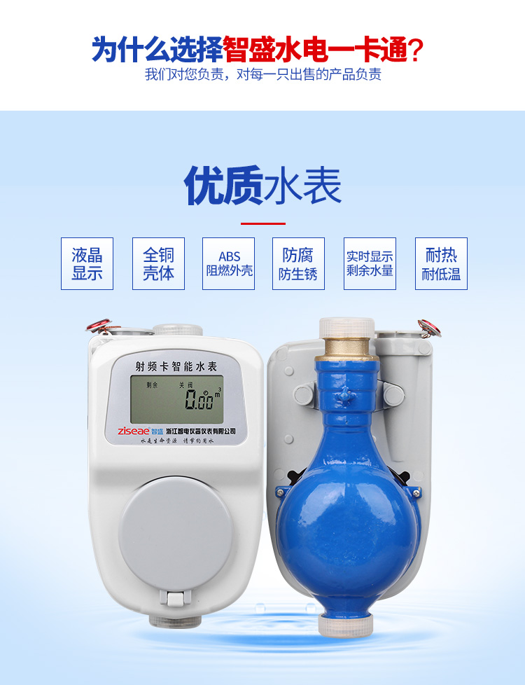 1、概述預(yù)付費(fèi)水表是以旋翼式水表為基表,由干簧管取信裝置、低功耗電控閥門(mén)、微電腦控制系統(tǒng)、射頻卡信息系統(tǒng)集合而成的智能水表。該產(chǎn)品改變了傳統(tǒng)的用水收費(fèi)方 式,由“先用水后交費(fèi)”變?yōu)椤跋冉毁M(fèi)后用水”,   每次售水收款都有記錄,解決了“收費(fèi)難、賬目亂”這兩個(gè)水費(fèi)管理工作中的難題。有遠(yuǎn)傳抄表功能的預(yù) 付費(fèi)水表還可實(shí)時(shí)統(tǒng)計(jì)用水?dāng)?shù)量,為水費(fèi)結(jié)算提供依據(jù)。產(chǎn)品符合國(guó)家標(biāo)準(zhǔn)GB/T778-2007《封閉滿管道中水流量的測(cè)量、飲用冷水水表和熱水水表》的全部技術(shù)要求。